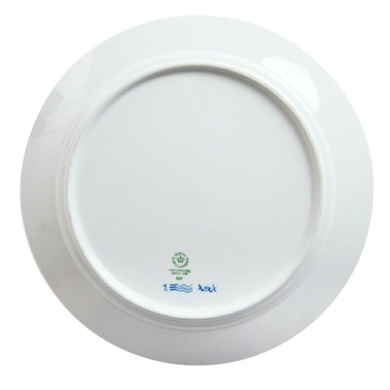 ロイヤルコペンハーゲン商品のバックスタンプは、 王冠と三本の鮮かなプルーの波型ラインで構成され、