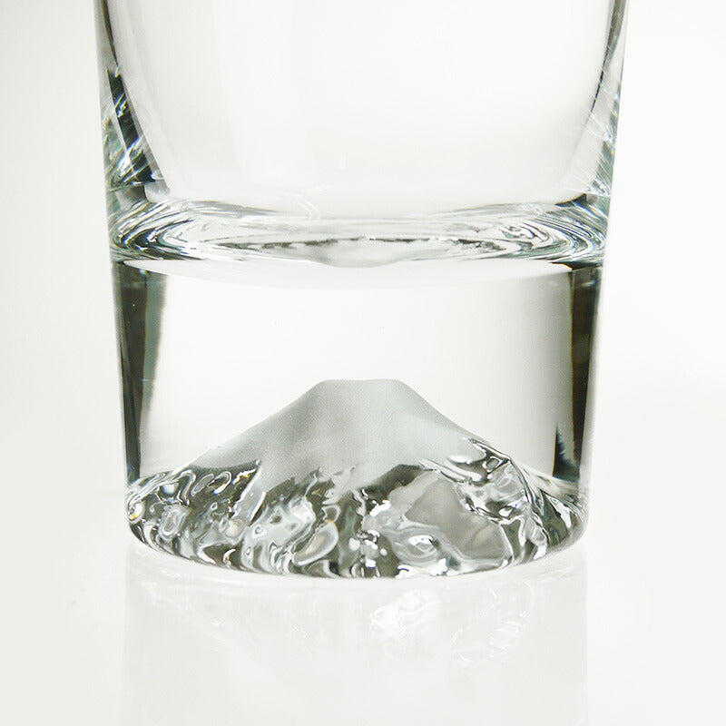 グラス底に浮かび上がる富士山は、実際の富士山のイメージを意識してデザインされ、
