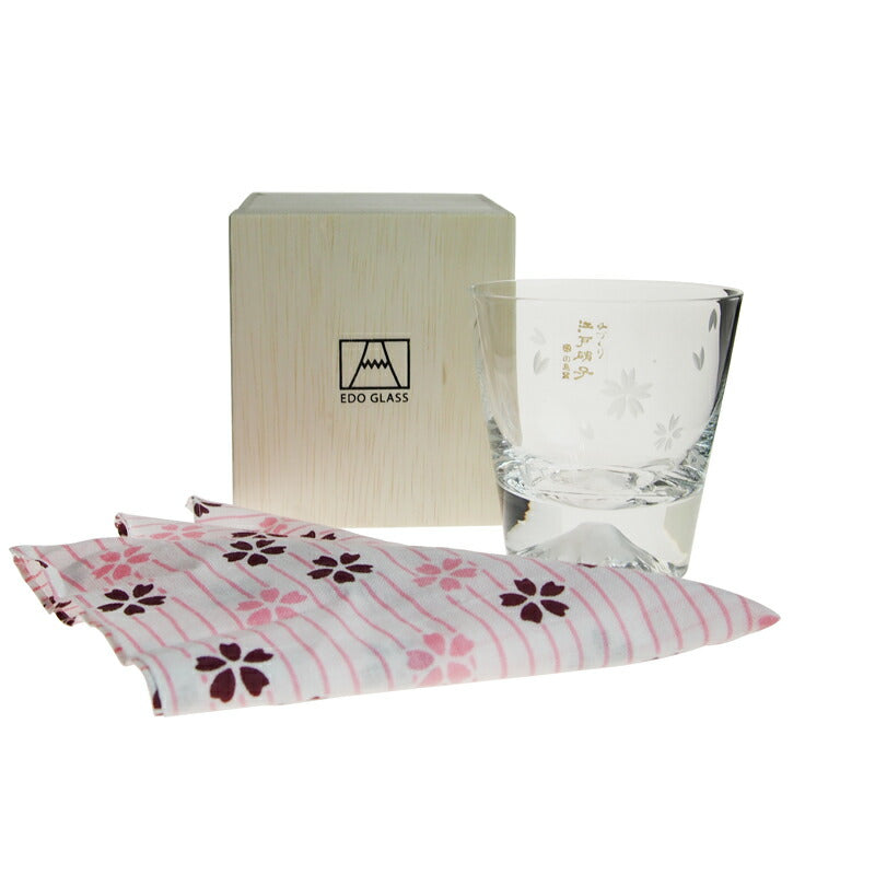 田島硝子 富士山 ロックグラス 桜富士 TG16-015-RS(桜風呂敷包み)