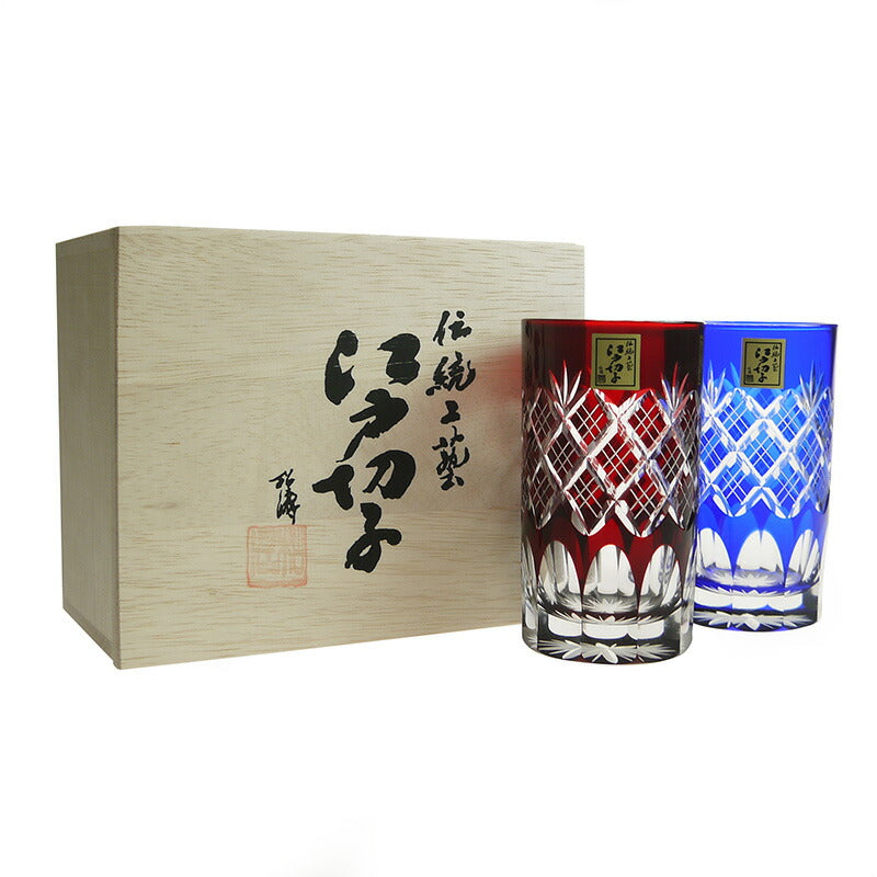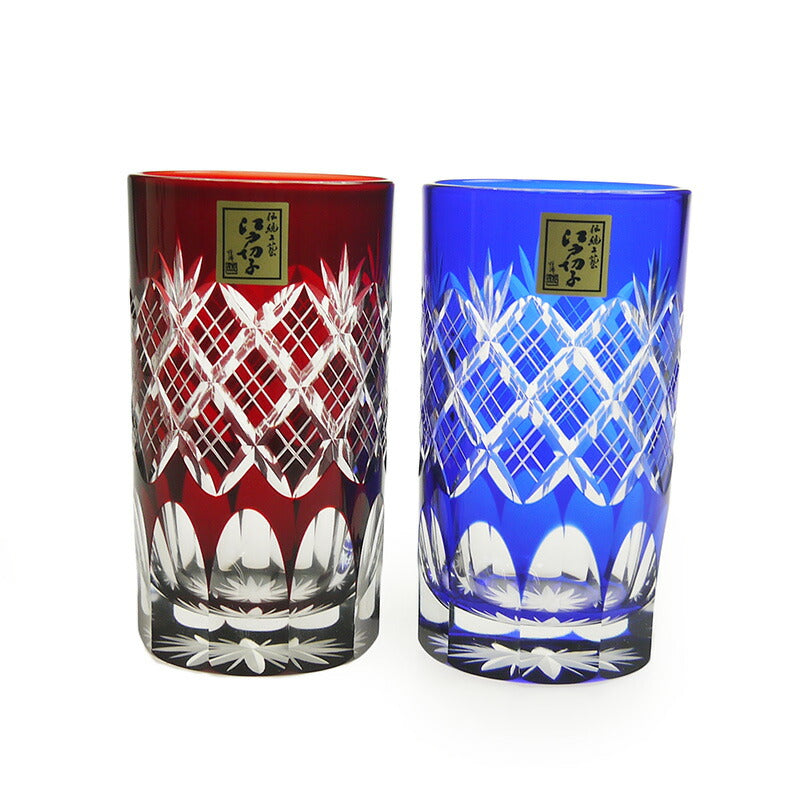 田島硝子 江戸切子 重ね矢来文様・菊底 タンブラーペア TG04-14-2